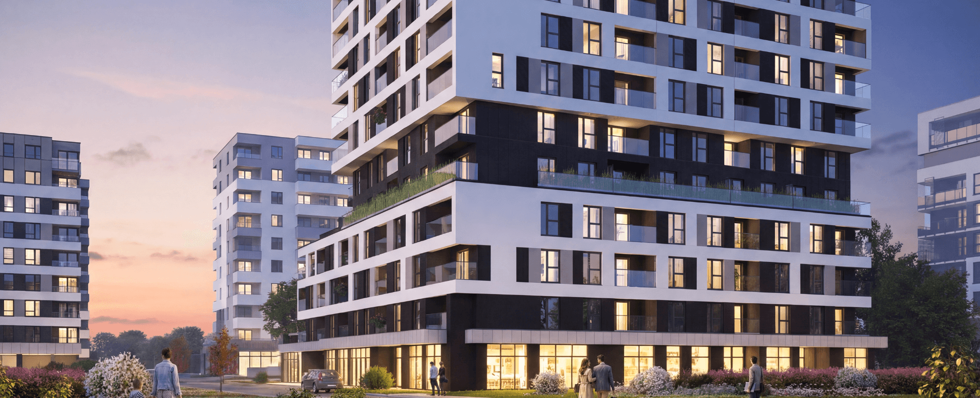 W sprzedaży mieszkania o powierzchniach 35–128 m² w układach od 2 do 5 pokoi.